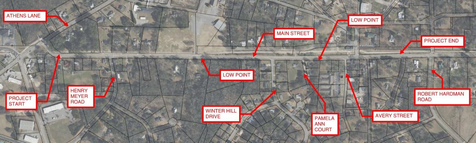 This project will provide for capital improvements for the repair, upgrade, and/or replacement of failed or failing stormwater pipes within the transportation related stormwater systems on or in the vicinity of Main Street in Winterville. Depending upon actual costs and funding availability, the improvements may include, but are not limited to, stormwater improvements such as: addition of inlets, repair or replacement of curb and gutter, additional piping, and/or any necessary repair and repaving associated with the improvements. To the extent allowed by law, budgeted project funds may be used as matching funds for leveraging grant opportunities. Additionally, to the extent allowed by law, other funding sources, including, but not limited to, grants, may be utilized to offset and/or reduce the project budget. Any unspent project funds that accrue as a result of the receipt of grants or other funding sources may be assigned to other approved TSPLOST projects.
