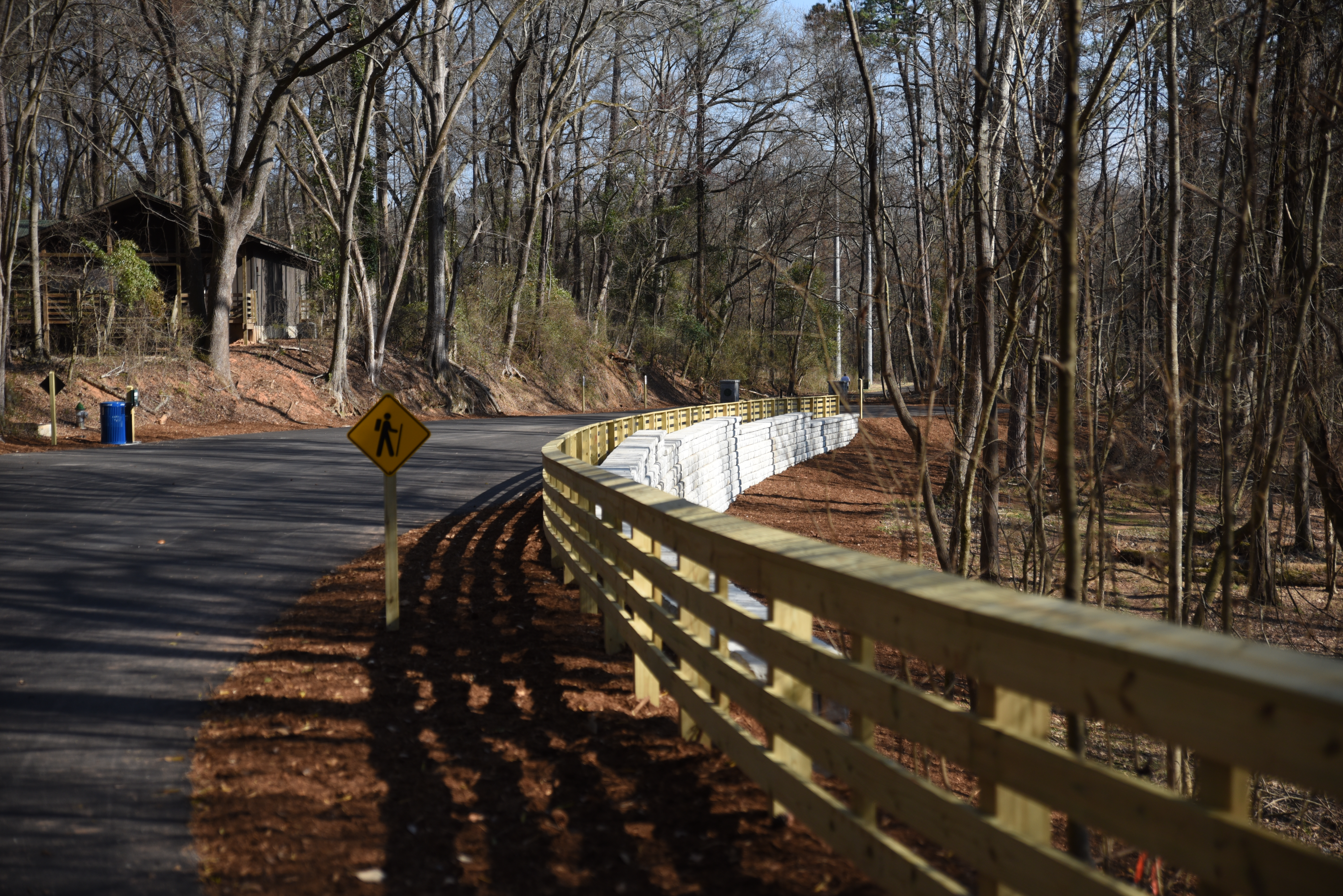 Construction is now complete on the Greenway Trail section near Sandy Creek Nature Center and Walker Hall. The newly renovated trail segment officially opened on February 9, 2025, during the annual Frog Hop 5K.