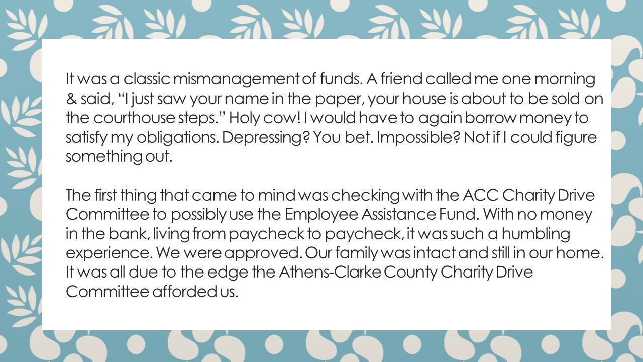 ACCGov employees and retirees donated over $40,000 to the Employee Emergency Assistance Fund (EEAF).
