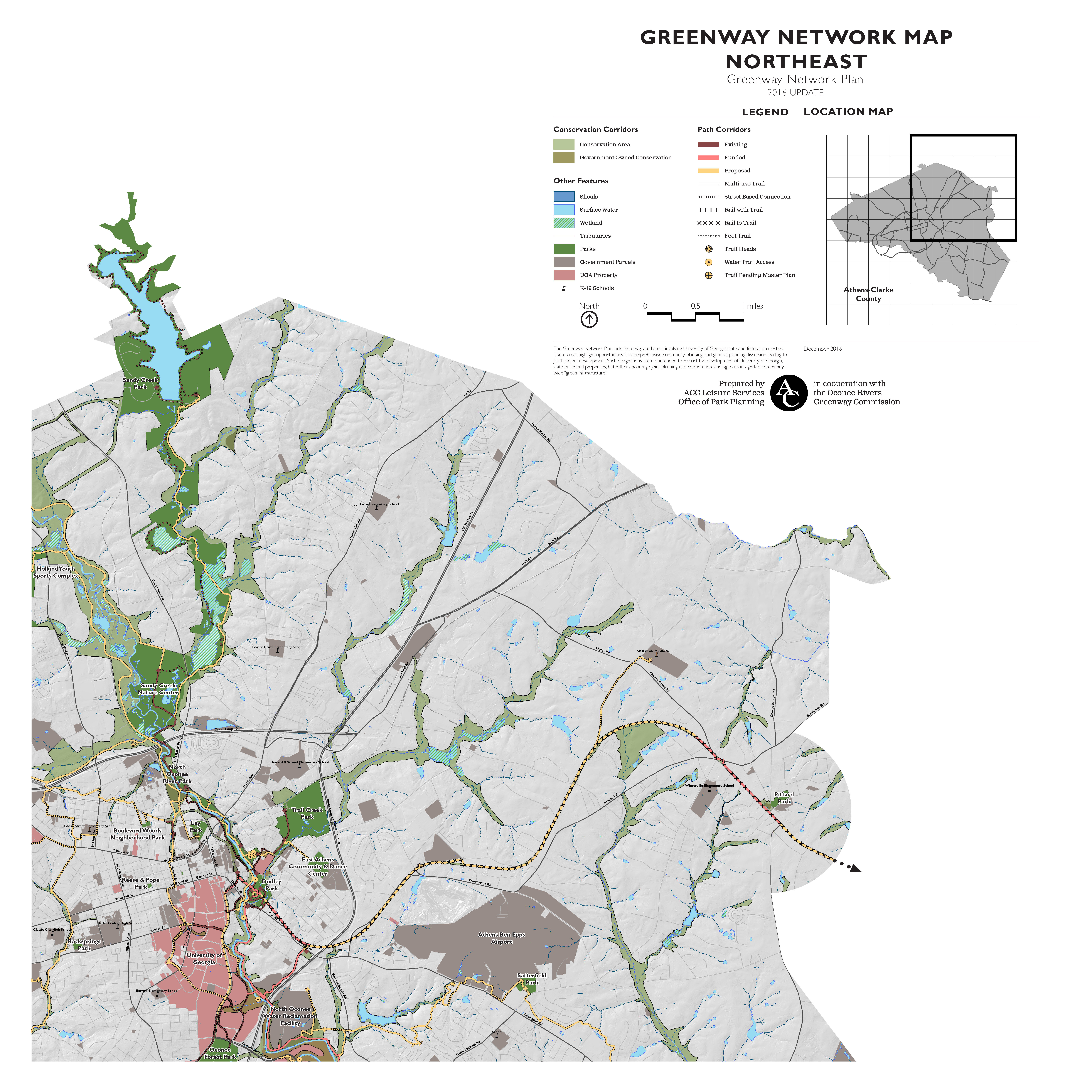 In 2025 the Athens-Clarke County Unified Government (ACCGov) Leisure Services Department and Oconee Rivers Greenway Commission (ORGC) updated the Oconee Rivers Greenway Network Plan.